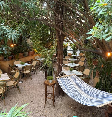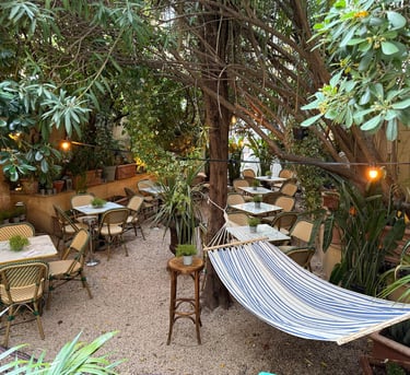 Et puis, il y a le Secret Garden. Véritable cour intérieure végétalisée ou nichent les oiseaux, dissimulée derrière les murs du restaurant, il déploie une ambiance féérique, où l'on oubie qu'il y a la ville bruyante de l'autre côté du mur. Fontaine centrale, guirlandes lumineuses, bougies et fleurs grimpantes composent un décor suspendu hors du temps. On y dîne à la lueur des flammes, dans une intimité et fraîcheur rare en été, enveloppé par le parfum des plantes et le murmure de l’eau. C’est là que le Singe Vert révèle peut-être son visage le plus poétique,